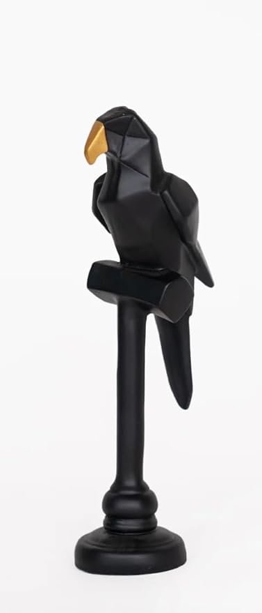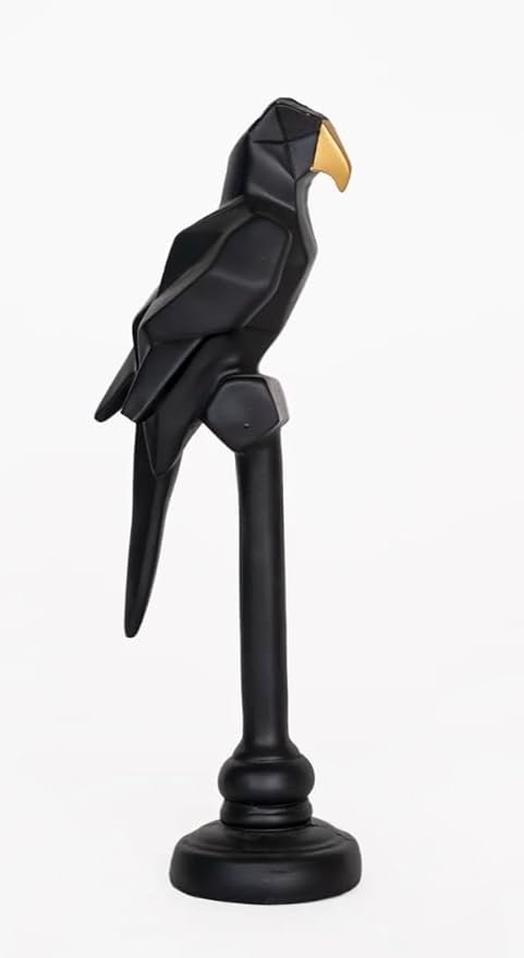 Elevate Your Space with Modern Avian Art. Introducing the Geometric Parrot Statue, a perfect blend of natural beauty and contemporary design. This sleek figurine is sculpted in an Abstract, Origami-inspired style, using clean lines and sharp angles to create a captivating modern form. The bold, monochromatic black finish is dramatically highlighted by a polished gold beak, giving the piece a high-end, gallery-quality look. Mounted securely on its own black pedestal, it commands attention without dominating the space. Crafted from durable polyresin, this statue is a substantial, long-lasting addition to your decor. It?s ideal for those who appreciate minimalist, contemporary, or luxury interior design styles. Whether you place it on an office desk, a living room mantel, or a console table, this Black and Gold Parrot Sculpture is an unforgettable gift and a sophisticated statement piece.